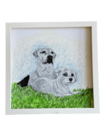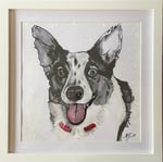 Framed 10x10 inch Drawing with color accents. 12x12 Wood Frame. .